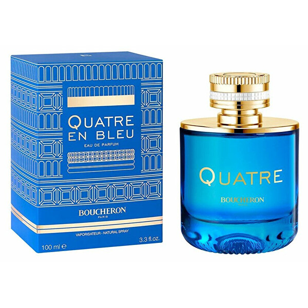 Vůně Boucheron Quatre en Bleu předkládá lehkost, radost a klid z jedinečného okamžiku ukotveného v naší paměti. Vůně začíná svěžími tóny bergamotu, citronu a mandarinky. Poté plynule pokračuje k srdci, ve kterém ucítíte rozkvetlý jasmín, růži a tuberózu. Nakonec vás potěší pižmo, santalové dřevo a dřevo akigala.Vůně byla uvedena na trh v roce 2021.