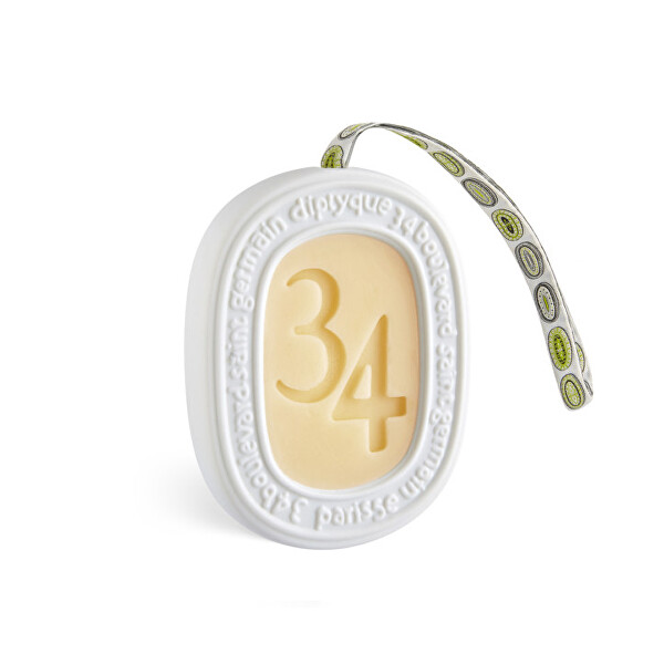 34 Boulevard Saint Germain – neobvyklé zelené akordy, mechy, listy černého rybízu a sušené fíkové listy – v oválném parfémovaném vosku orámovaném bílým keramickým prstencem a provazem k zasunutí do zásuvek nebo na zavěšení do skříně.Určeno pro použití v malých prostorech, jako jsou komody, skříně, kliky dveří. Chraňte před přímým slunečním zářením a skladujte při pokojové teplotě. Neumisťujte do automobilů.
