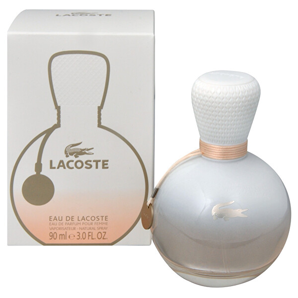 Značka Lacoste uvedla v roce 2013 na trh dámskou vůni Eau De Lacoste, která se řadí mezi květinově-ovocné vůně. Design a tvar flakonu je inspirován tenisovým míčkem. V úvodu vůně se setkáme s mandarinkou, bergamotem a ananasem, v srdci se ukrývá jasmín, květ pomerančovníku a lístky ananasu. Nakonec vůni zafixuje vetiver, vanilka santalové dřevo a peruánský balzám.
