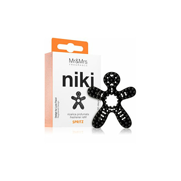 Panáček Niki big Spritz obsahuje speciální esenciální oleje, které provoní váš vůz po dobu až 3 měsíců. Bojuje s nepříjemnými pachy, jako je například kouř z cigaret a příjemně osvěží vzduch. Neobsahuje alkohol. Panáčka stačí zasunout do ventilátoru auta díky úchytu, který má na zádech.