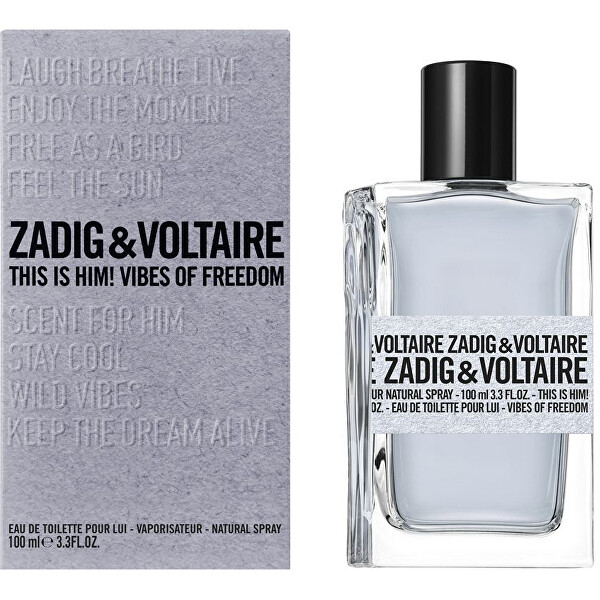 Charismatická toaletní voda Zadig & Voltaire This Is Him! Vibes Of Freedom je vhodná pro ty, kteří si rádi užívají každý okamžik svého života. První seznámení se složením začíná u jiskřivých, šťavnatých a veselých odstínů mandarinky a levandule. Srdce je obzvláště krásné, díky bohatým odstínům kadidla a kardamomu. Rafinovaná a ušlechtilá stopa cedrového dřeva a pačuli zakončuje kompozici.Vůně byla uvedena na trh v roce 2022.